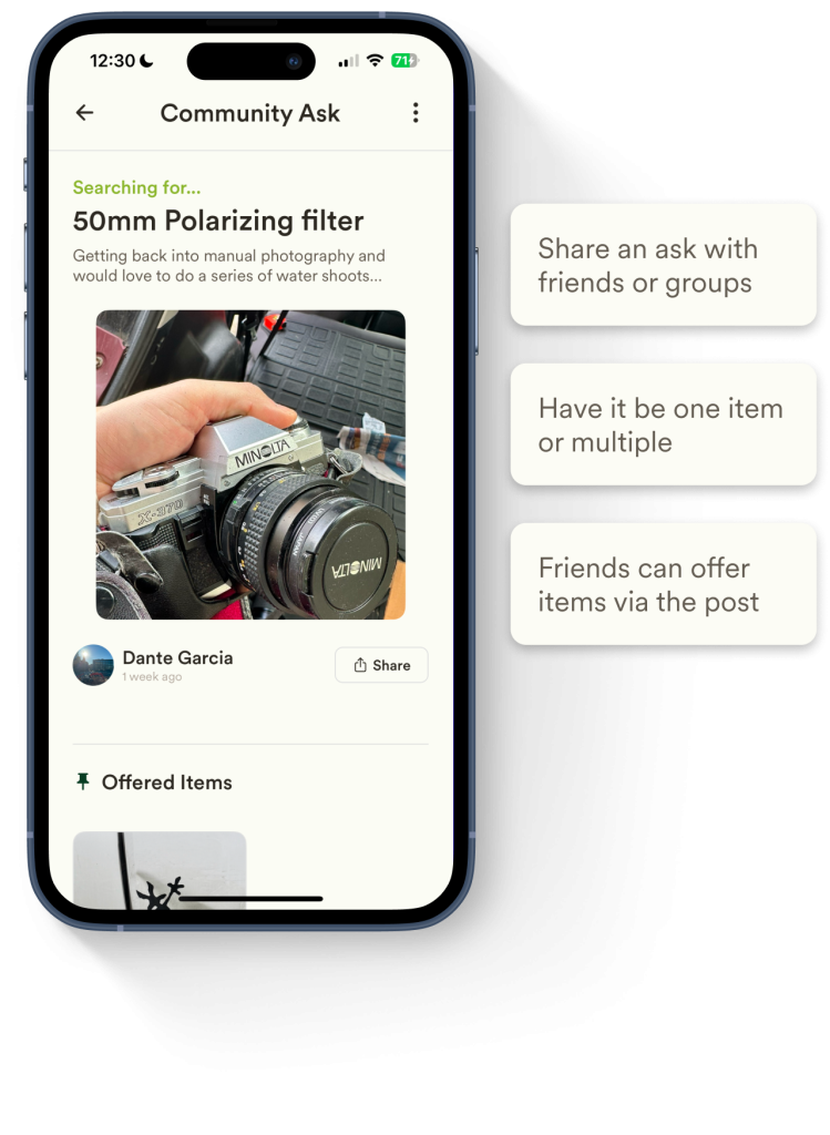 Post a Community Ask when you’re looking for something, so people in your circle can offer what they already have.