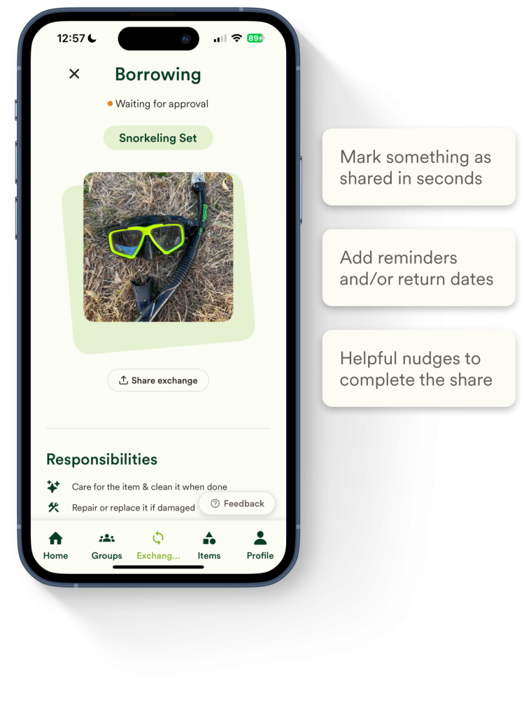 This isn’t for renting from strangers. It’s for people who already know each other. Add simple permissions, reminders, and return notes so things can move with more clarity and less friction.