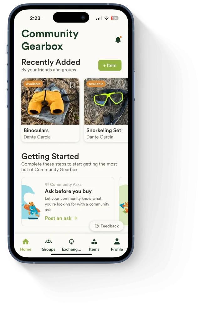 Community Gearbox helps friends, families, and groups gather, share, co-own, and care for useful things — with way fewer “wait… who has the tent?” moments.
